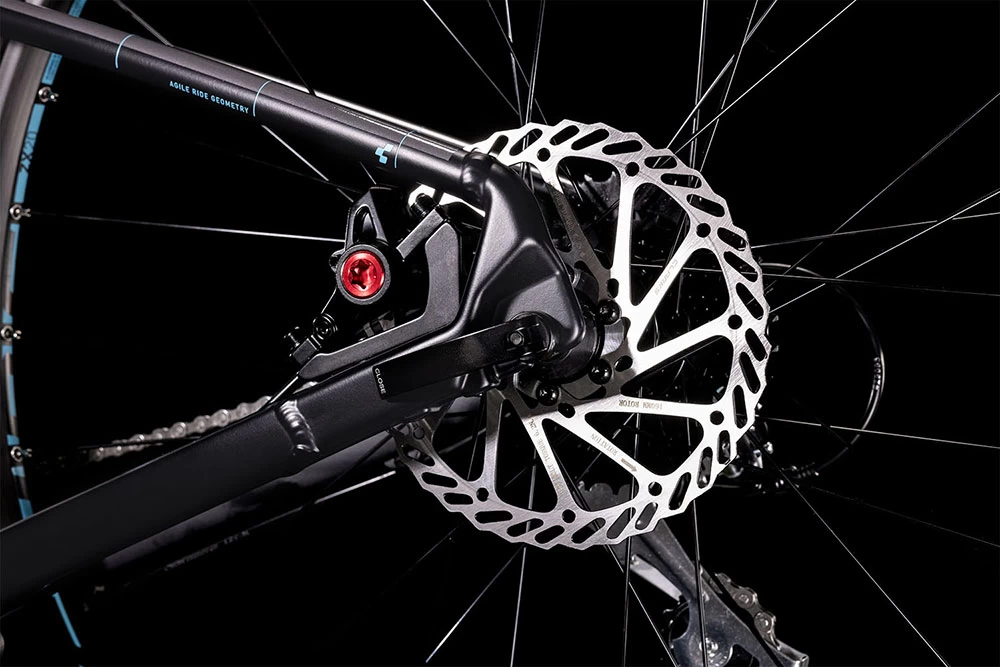 Bei CUBE weiß man nur zu gut: Oft sind es kleine Details, die den entscheidenden Vorteil bringen. Deshalb hat Cube beim neuen Aim Race eine Suntour Gabel mit 100 mm Federweg verbaut, die blockiert werden kann. Sie haben sich für kraftvoll und zuverlässig zupackende, einfach bedienbare hydraulische MT200 Scheibenbremsen von Shimano entschieden.
