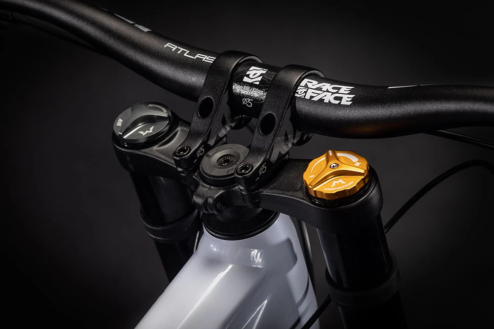 Wer im Downhill Zirkus unterwegs ist, kennt die Bomber Komponenten – Synonym für kompromisslose Qualität und höchste Performance. Und genau deshalb hat Cube beim Cube Two15 Race dem Marzocchi Bomber CR Dämpfer eine Bomber 58 FIT GRIP Federgabel zur Seite gestellt: die ultimative Kombo für geschmeidige, superprogressive Kontrolle am Berg.