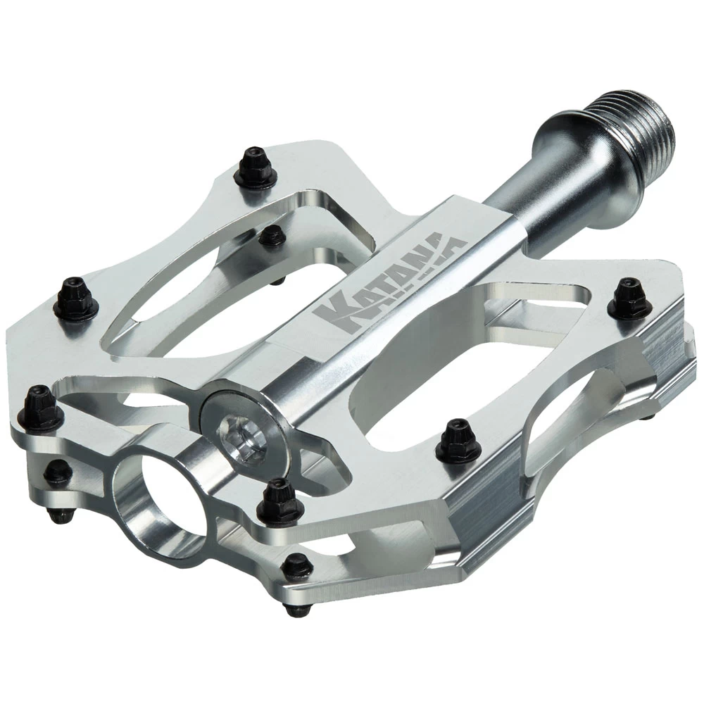 Die flachen Katana X7 S-Light Plattformpedale im Midsize-Format bestehen aus einem leichten robusten Aluminium-Korpus und sind jeweils mit 6 EVO-Pins pro Seite für den nötigen Grip auf allen Trails versehen. Der leichte Alu-Pedalkörper und die CNC-gefrästen Achsen sorgen in Verbindung mit hochwertigen Kugellagern für eine hohe Lebensdauer in jedem Einsatzbereich, selbst unter härtesten Bedingungen.
