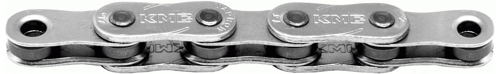 Die Z1eHX Narrow Singlespeedkette von KMC mit einer vernickelter Oberfläsche für BMX, Nabenschaltungssystem und andere Single-Speed-Systeme, die eine direkte Kraftübertragung benötigen.