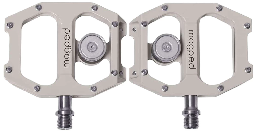 - Gewicht: Das magped Pedal ist ein modernes und hochwertiges Flat Pedal aus leichtem Aluminium, und einer CrMo Spindel. Alle magped Pedale sind trotz zusätzlichem Magnetsystem nicht schwerer als vergleichbare high end Pedale.