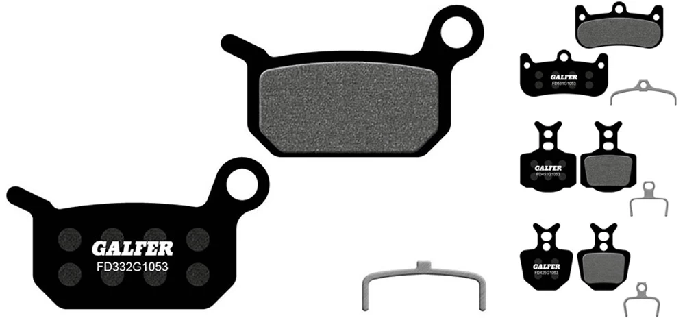 Die schwarzen Galfer Standard-Beläge sind für den Einsatz in XC und Enduro konzipiert. Sie zeichnen sich durch hervorragende Haltbarkeit aus und punkten auch in den Disziplinen Fading-Resistenz, Bremskraft und dem Einsatz in Dreck und Schlamm.