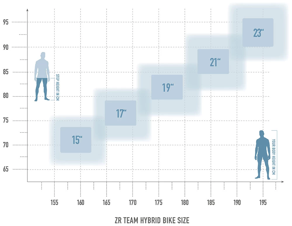 Mit Hilfe unserer Grafik wollen wir Dir eine Empfehlung bei der Suche nach Deiner richtigen Rahmengröße geben. Neben Schrittlänge sowie Körpergröße spielt natürlich auch Dein persönlicher Fahrstil, Einsatzbereich sowie Vorliebe eine große Rolle. Wenn Du mit Deinen Angaben im Grenzbereich liegen solltest, kannst Du zwischen zwei Rahmenhöhen wählen: die kleinere Rahmengröße ist agiler/wendiger/verspielter, die nächstgrößere Rahmenhöhe laufruhiger/spurtreuer und hat im Uphill die Nase vorn.
